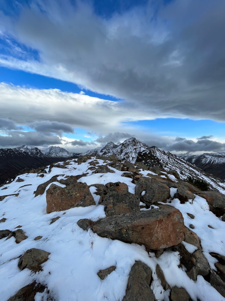 Hiking up Peak 3 in the Chugach Mountains at the end of September. One of my favorite hikes following the Sunnyside Flattop trail, then splitting off to hike up Peak 3.